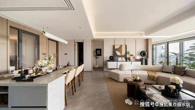 建面约143㎡平层奢宅:方厅+双厨设计,适合多人家庭欢聚