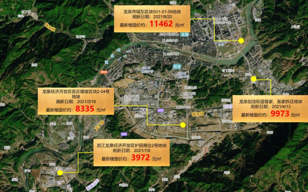 再加上之前的拍出的地块:浙江龙泉经济开发区炉田商住2号地块,成交楼面价3972元/m²、龙泉经济开发区低丘缓坡区块2—04号地块,成交楼面价8335元/㎡、龙泉市剑池街道曾家、张家拆迁地块,成交楼面价9973元/m²。一波又一波的加势,堪称是彻底点燃了龙泉市场,那么,在如此火爆的涨势背后,哪里还能有抄底入场的机会?