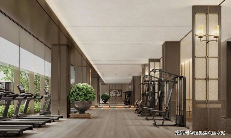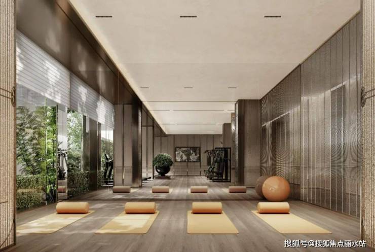 架空层业主会所内,设置了健身区、书吧、水吧、私宴厅、影音室、瑜伽区、儿童游乐区、小型高尔夫练习场、台球活动室、泳池等活动空间。