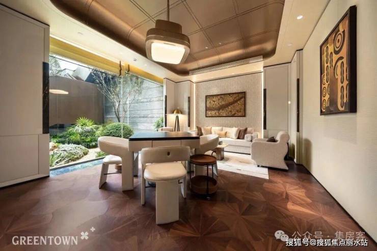 “PrivéTable瑰飨”私宴厅,会客用餐区相融,落地窗揽庭院绿意;“Obsidian Club围弈”棋牌室设智能麻将桌与休憩沙发,更有“Vigor Hub 律动”“Thermal Swim游弋”等会客厅配全景落地窗,让生活与自然互动。