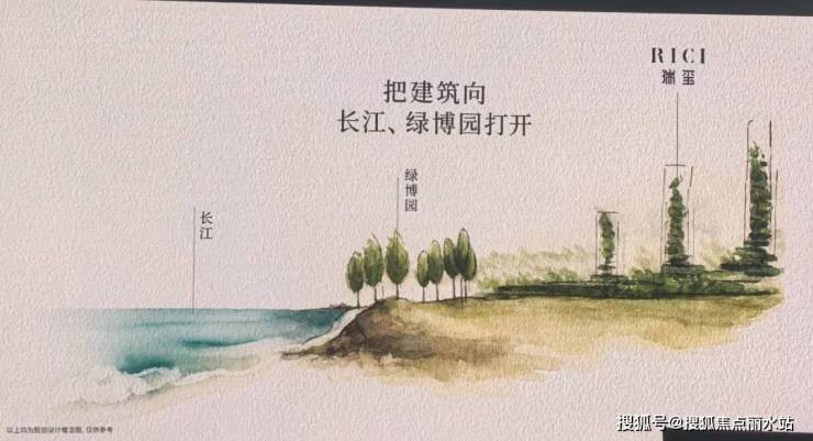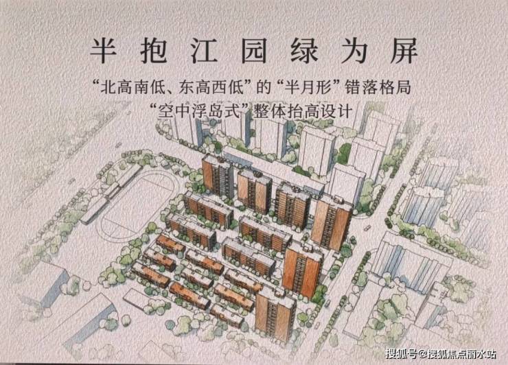 瑞玺规划是半抱江园绿为屏,“北高南低、东高西低”的“半月形”错落布局,加上“空中浮岛式”整体抬高,把建筑向江园充分打开: