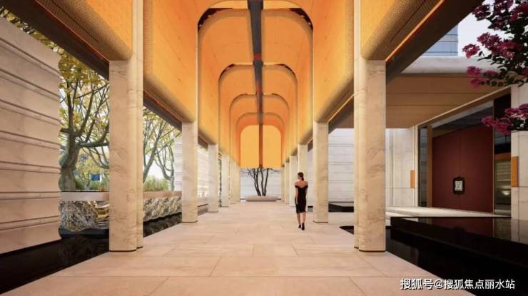 看效果图可以发现,项目内部走廊、地面、顶部 、柱子多用石材,造价不菲,看上去很是华丽大气。