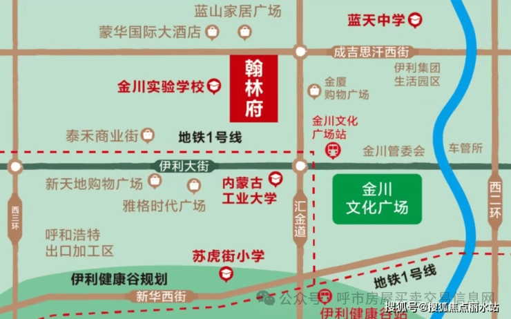 (交通优势)从项目往东可到达西二环、北二环快速路入口和西万达商圈;从汇金道转盘往南大约800米就是金川的核心主干道伊利大街,在金川文化广场这边就有上下口,可以直接通往市区,往北就直接上了G6高速,未来出行十分便捷,完全没有后顾之忧。