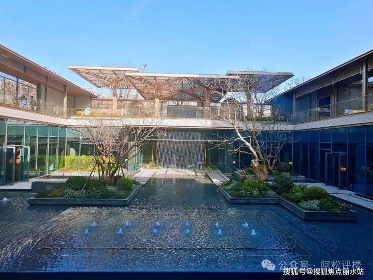 从目前兑现的实景来看,此盘细节考量也很到位,大到功能区配置、整体用材、配色,小到连廊镂空格栅设计、一棵树的位置等等。