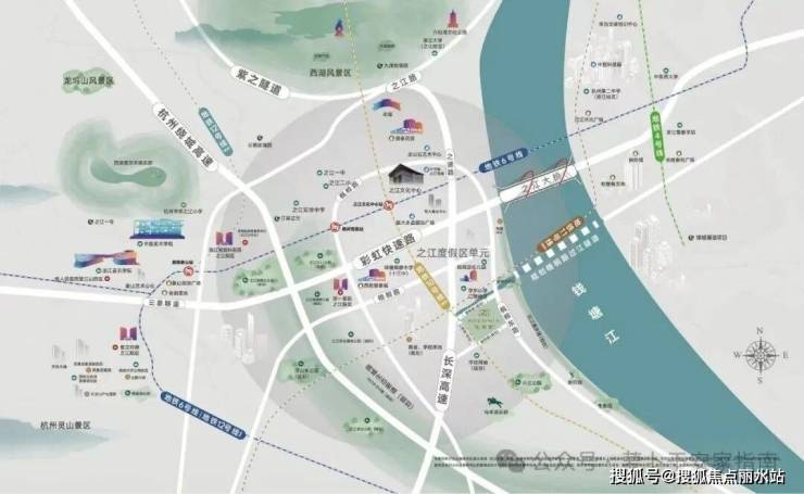 景观资源:项目东瞰钱塘江,直线距离仅约800米,北倚西湖群麓,云栖竹径、五云山等国家级生态资源成为社区后花园,景观资源得天独厚
