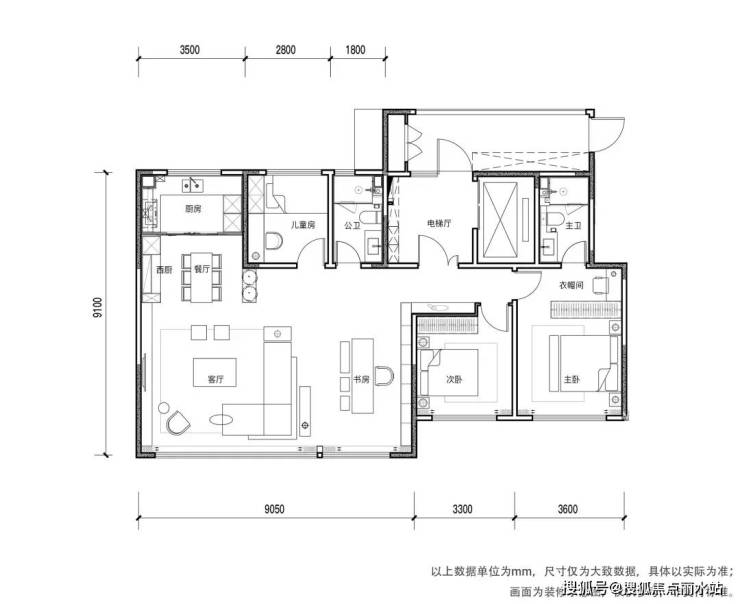 关键是,入户的电梯厅可作为家政间,增加了得房面积。