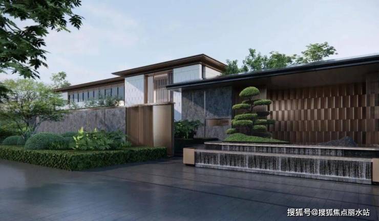 公区的设计上,采用了大量的石材、铝板、叠水,归家途中似度假,可观赏、可游玩。
