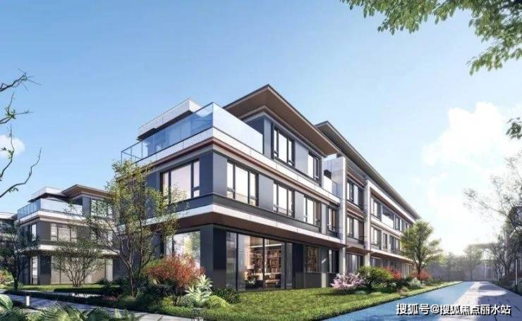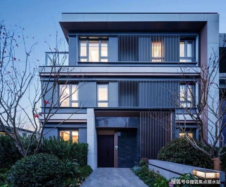 项目的联排、合院、联排、洋房,均采用了灰色铝型材+石材一体板+香槟色铝板+灰色涂料,现代化设计,顶部檐口造型别致,简约大气。