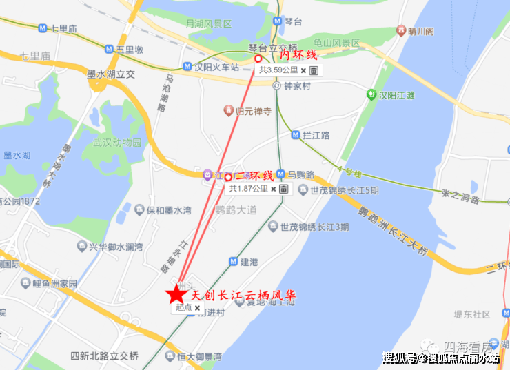 自驾:在项目门口主要有两条纵向道路,即鹦鹉大道和晴川大道,其中晴川大道可以直达汉口汉正街,而鹦鹉大道与内环线、二环线、新二环线连接处都有匝道口,不仅可以直达汉口核心、还能快速到达武昌核心,通过鹦鹉洲长江大桥和杨泗港长江大桥到武昌方向均是快速路。