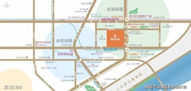 项目东北角距离汉口城市广场仅500多米,距离金桥永旺梦乐城直线距离也仅2公里左右。
