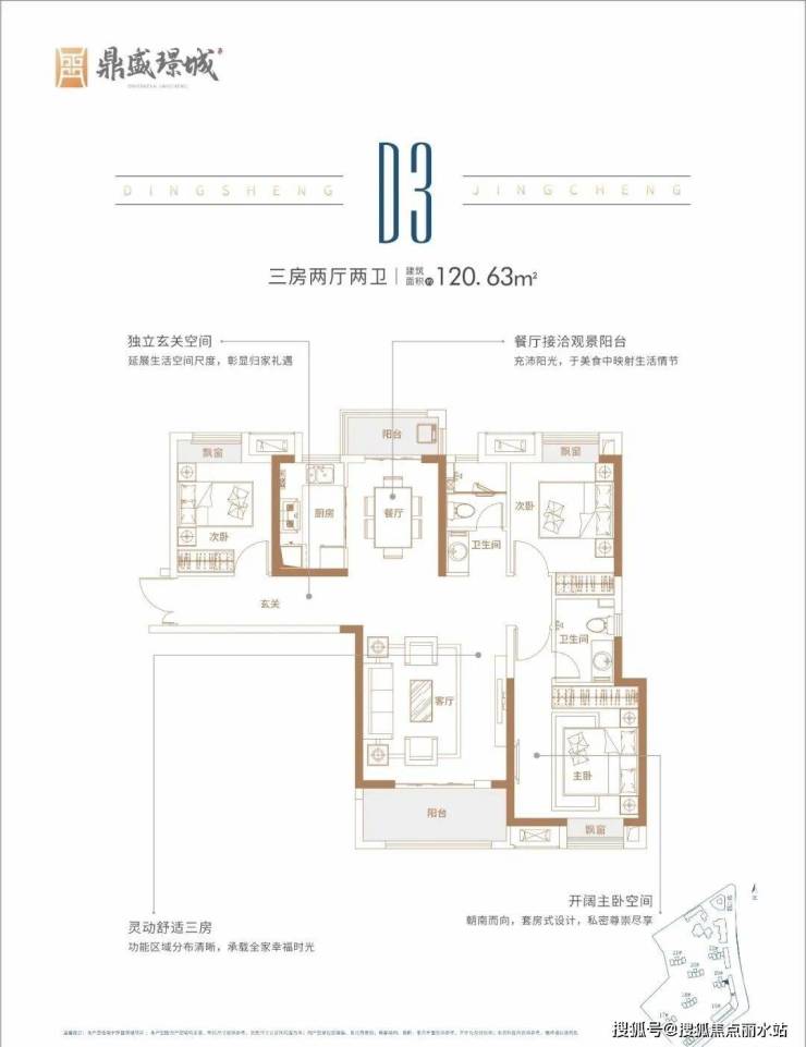 19号楼西边户,该户型是上面约120㎡户型的升级版,面积更大,空间感和舒适度更强。