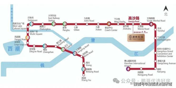 ◎【地铁覆盖】:邻近杭州地铁1号线,距离高沙路站直线距离约1.7公里。1站金沙天街,8站杭州东站,9站直达萧山机场。未来规划将有8号线西延和21号线双线交汇邻近项目