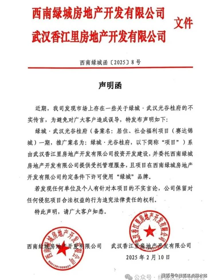 项目是武汉香江里房地产开发有限公司(孝感赛达)投资开发,项目交由绿城代建,绿城与赛达也同时出具声明函件。