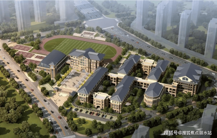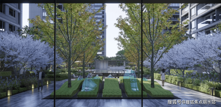 中轴景观配户外泳池、300米跑步环;