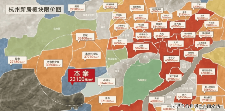 杭州新房板块现价图:城西价格洼地