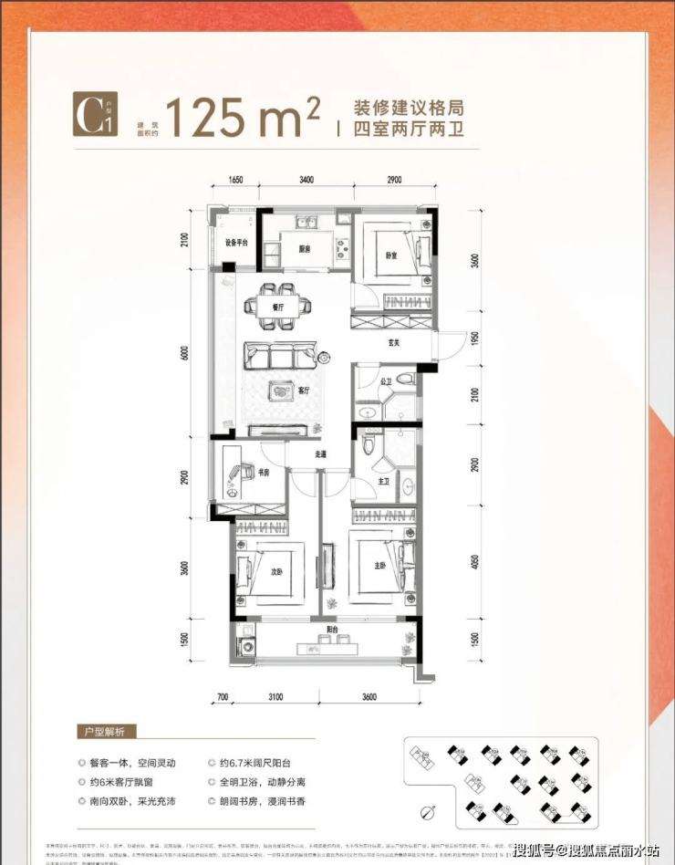二、建面约125方四房两厅两卫: