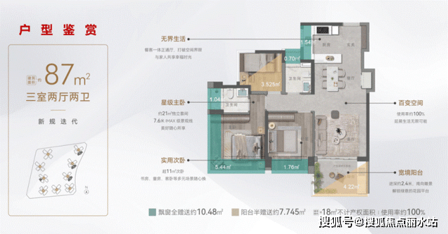 于城区,无论是新房二手房,能够做到标准三房两卫的户型,往往需要95㎡左右的建筑面积,此次,海德理想城带来的不仅是城区唯一的90㎡以下新规产品,“87㎡标准三房两厅两卫”的户型,更以约100%的使用率、高达18㎡的赠送面积,助力年轻家庭轻松安家东莞城市核心。