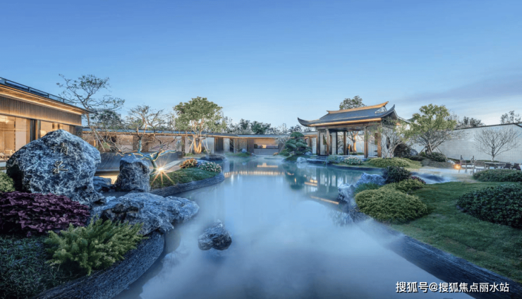 建发云栖上宸注重园林景观的打造,以中式园林为设计蓝本,将山水、植物、建筑等元素巧妙融合,营造出一种自然和谐、宁静致远的氛围。