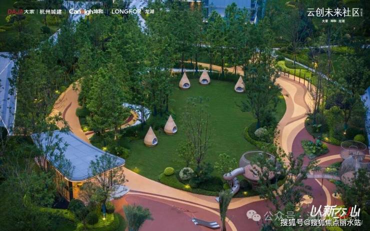 云创未来社区的内部规划同样亮点十足。约8万方体量的园林,堪比一个小型公园,规划了“一环、两心、三进、八园” ,遵循五重肇源法则,打造百万方水景,融合面水、涌泉、跌水、龙鳞水四种形态,景观层次丰富,一步一景,让业主仿佛置身于自然的怀抱中。三个入口分别设置水景与迎宾花园,还有不同主题景观、儿童乐园、局部风雨连廊等,为业主提供了舒适的休闲空间 。