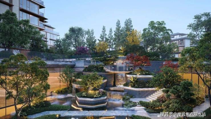 景观设计,以北宋李公麟《西园雅集图》为蓝本,围绕约700㎡下沉庭院,营造水石潺湲、草木芬芳的游园之境。