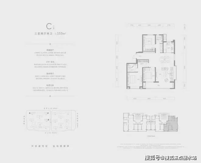 三室两厅两卫:123㎡、128㎡、139㎡、153㎡