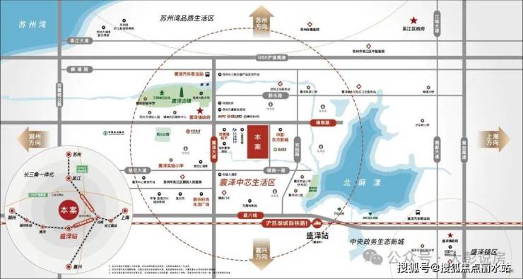黄金干道:双高铁接驳,四横三纵城市路网,周边镇南路、震泽大道、双阳路、沪苏湖城际铁路(建设中)环绕,紧靠苏沪嘉城际铁路震泽古镇站点(建设中)