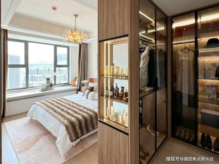 南向景观套房,配备宽敞通透飘窗及独立浴室与衣帽间,让您既能近观园林绿意,又能远眺都市繁华,尊享非凡生活品质与宁静心境。