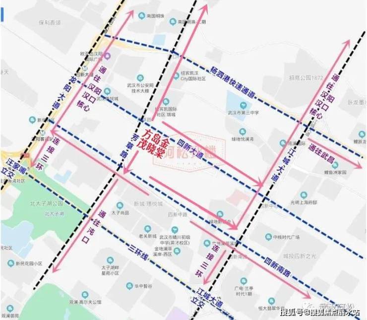 汉阳经历多年的发展,如今正在形成以四新方岛、月湖-琴台、归元-钟家村片为拉锯发展的汉阳铁三角。而方岛金茂海棠所在的四新方岛如今也是风头正盛。