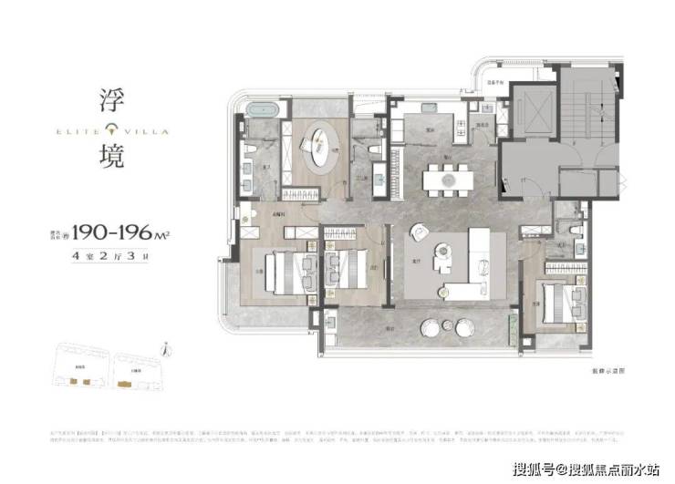 建面约190-196㎡户型,同样有着超越市面同类产品的奢阔感。