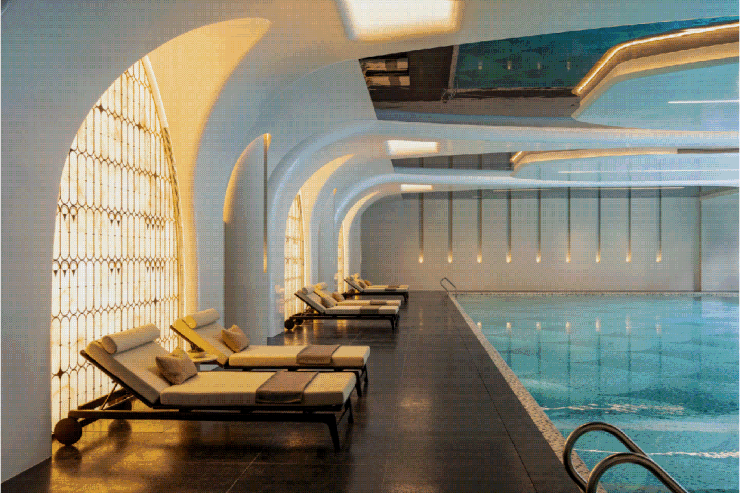 这里的故事悄然上演,归家结束一天繁忙,泳池的水温和得恰到好处,一次千米的畅游,是独享的静谧时刻。