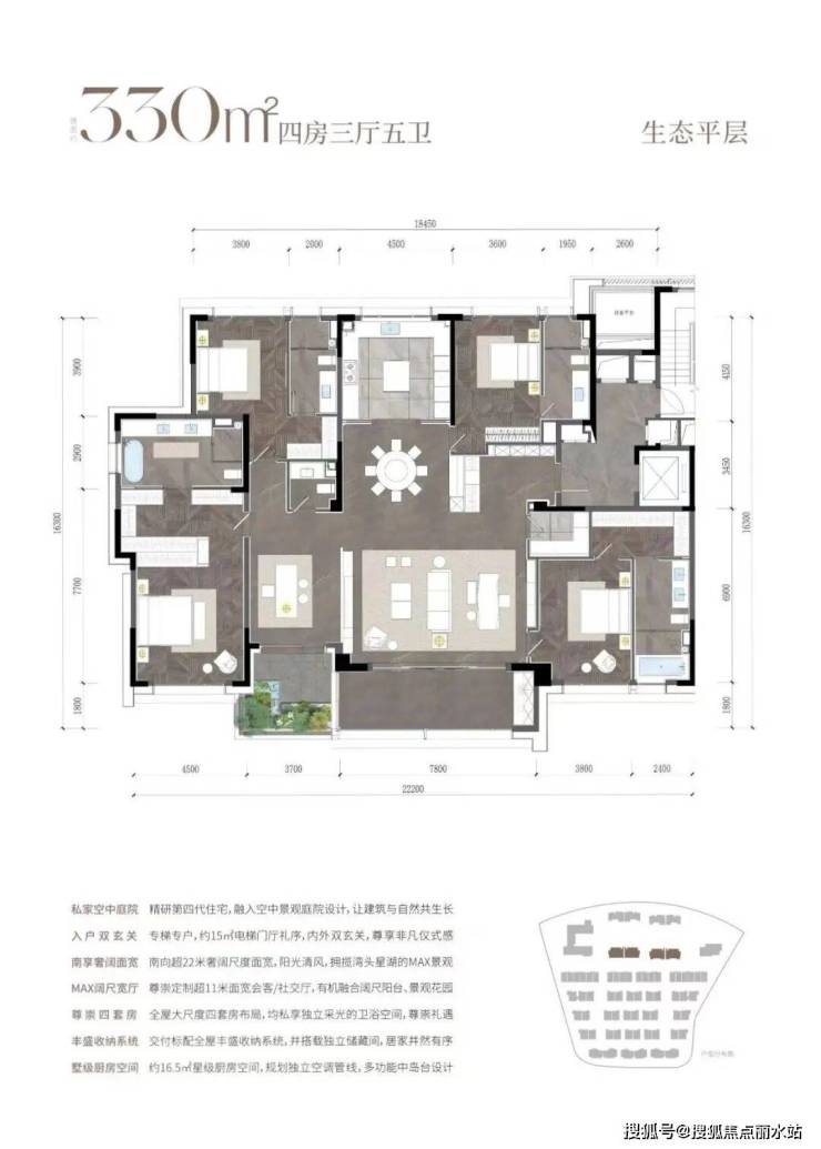 330㎡,四房五卫,四开间朝南,常规户型