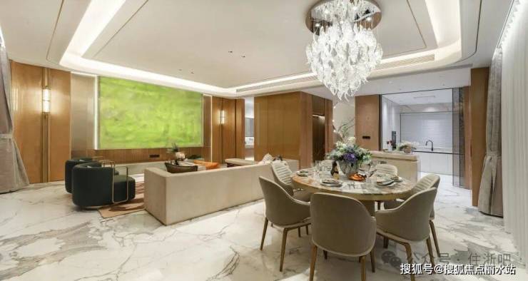 奢阔横厅与南向私享天地无界相连,匹配大家族的奢居气场。