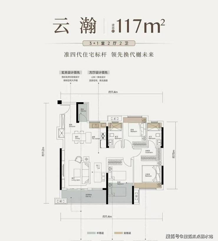 云瀚户型建面约117平3+1室两厅两卫:此户型位于边户,也是比较常见的南北通透户型。这个户型的玄关设计成了一个小房间,因为承重墙的原因。不过一姐觉得,如果是开放式的,进入的空间感会更强。
