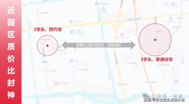 举个例子,园区娄葑的非四代宅洋房产品价格在3字头,距离星河·湖西源启仅35公里。虽然项目暂未取证,但根据目前放风价四代宅洋房400w起,叠墅520w起,与园区均价差超过1w。总价的话,价差至少在100w以上。