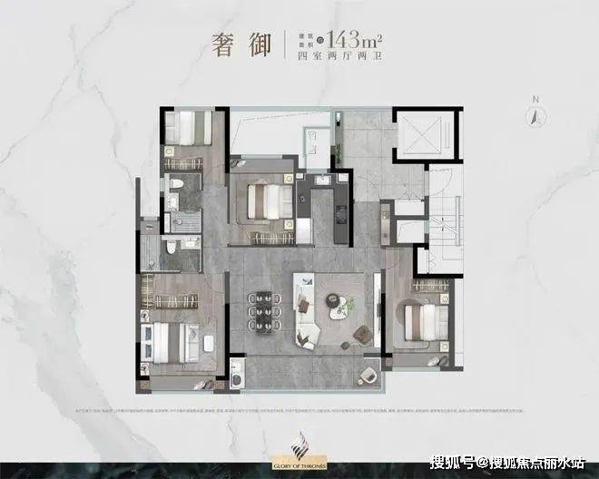 其次,所有户型,包括大平层在内,实际空间使用率都能达到约90%左右,吊打市面上的一众单价4万+、5万+的豪宅;因为空间使用率提高了,各个功能空间的尺度大幅提升。建面约220平户型居住体验甚至可向普通的300平户型看齐。