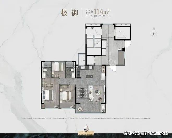 户型设计方面,高层是114户型,虽然不大,但户型极为方正,亮点还有大横厅、大阳台和三开间朝南。