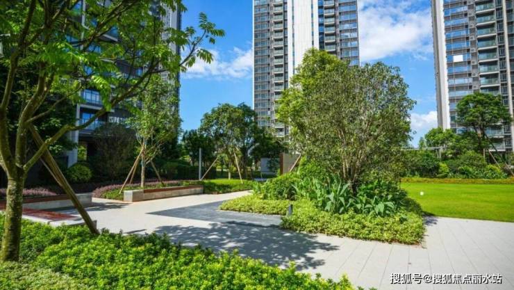 漫步园林之内,你很难相信这是即将交付的纯新盘,植物仿佛在这里扎根许久,枝叶自然舒展。