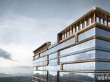 立面造型:中部以仿石铝板与玻璃幕墙交织,形成9层叠级结构,顶部穹顶轻盈升腾,整体呈现“刚柔并济”的视觉效果。