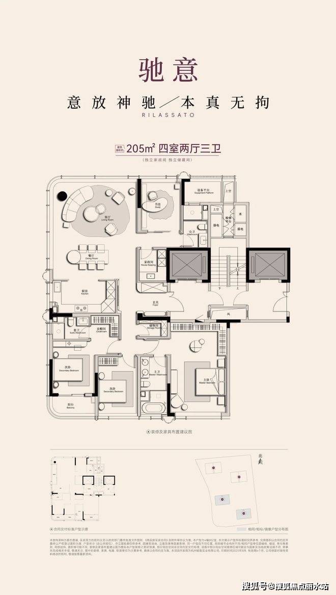 项目规划4幢小高层,户型涵盖205-245㎡平层及310-380㎡顶跃,层高3.15-3.3米,空间开阔:
