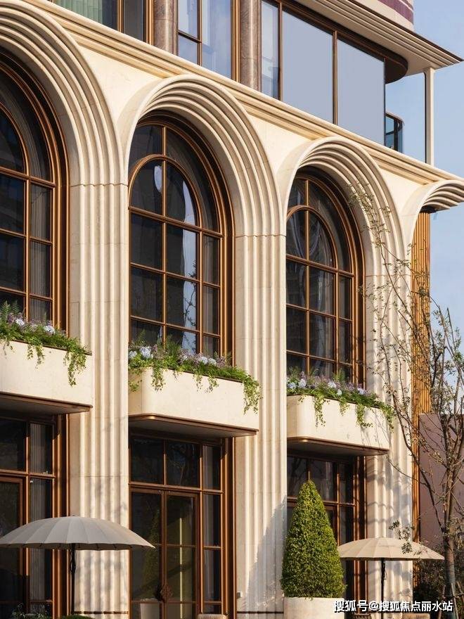 九米设计以“意式拱券”与“斯卡帕叠级”为语言,打造了一座“漂浮于运河之畔”的地标: