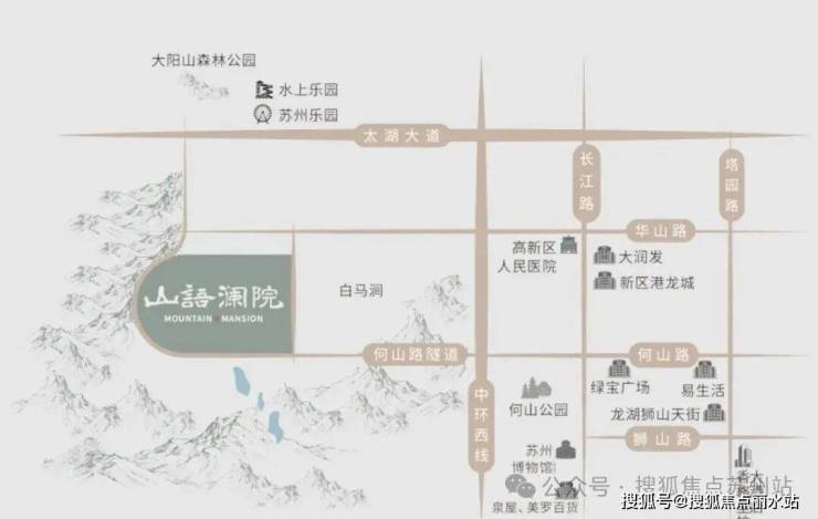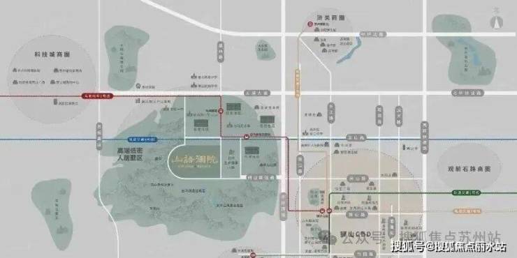 拥有着一隧道一环两轨,全维立体系的一个交通网络。 刚才我们讲到的河山隧道在我们项目南边,车程5.4公里,约10分钟左右就可以到达狮山CBD,向北的话1.8公里,约5分钟左右可以上太湖大道,向西的话可以到达科技城和绕城高速,向东的话我们直接可以连接中环西线畅达全城。市内外交通都很便捷。绿色出行公共交通的话,我们项目北面华山路有轨电车1号线,白马涧生态园站离我们项目较近,和苏州的地铁1号线,3号线都可以无缝换乘,同样畅达全程。同时还有政府正在规划的贯穿整个苏州东西两个方向的地铁9号线,未来也是从我们周边过的。