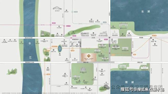 项目环抱武汉理工大学,周边汇聚华中师范大学、武汉大学、华中农业大学、武汉科技大学(洪山校区)等高等学府,视野开阔无遮挡,中心校区风景一览无遗。