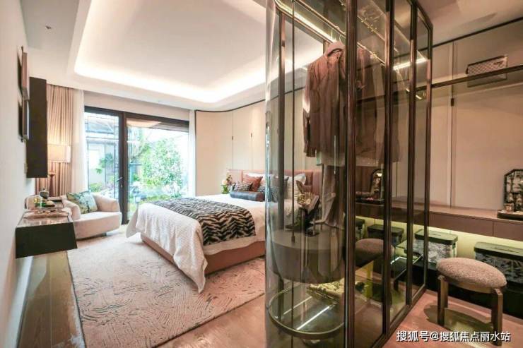朝南主卧套房设计,主卧开间约3.6米,配置独立卫浴和步入式衣帽间, 满足主人私密的个人生活空间,又能随时看到园中四季美景。