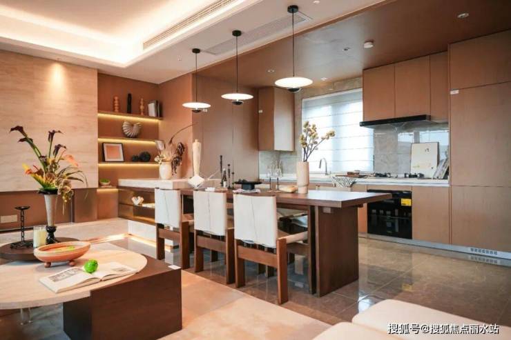 餐厅、厨房融为一体又各自独立,方便烹饪好的美味佳肴端上餐桌与亲友及时分享,进退间从容有序。
