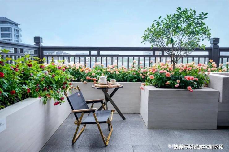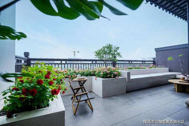 三层空中花园与室内客餐厅形成联动, 无论是栽植瓜果花木,还是品茗、阅读、聚会,都是美好的“故事发生地”,花开时,还能邀朋友一起沉浸于“偶寄闲情阅繁花”的意境之中。