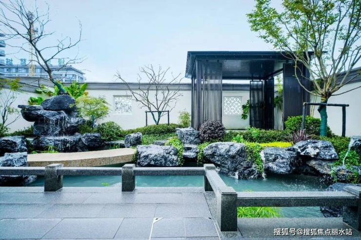推开院门,东方美学花园映入眼帘,小桥流水、叠石景亭,意趣盎然,令人仿佛置身一幅流动的江南水墨画中。 “小院朱扉开,天地纳君怀”,让现代人与东方花园久别重逢,找到独立的闲趣空间,回归精神文化的原乡。