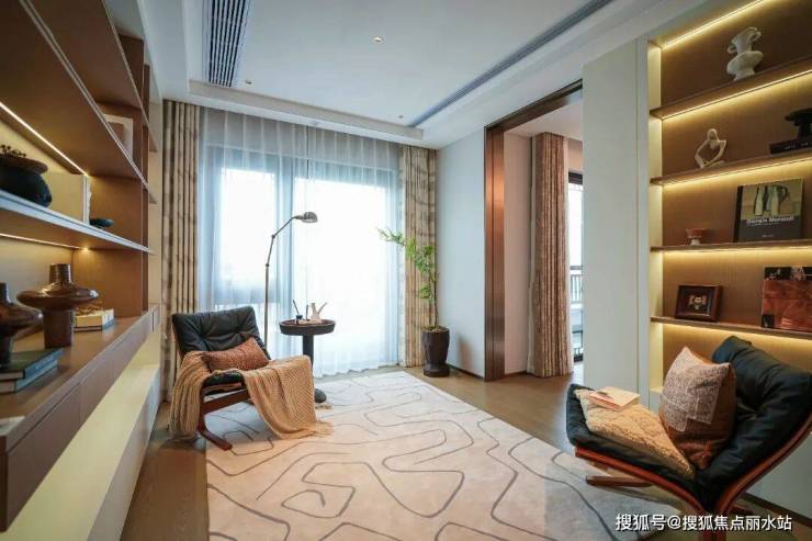 灵动空间,注重功能性与舒适性的结合, 自然光线通过宽大的窗户洒入,与淡雅的木质书架相映成趣,营造出轻松宁静的氛围。
