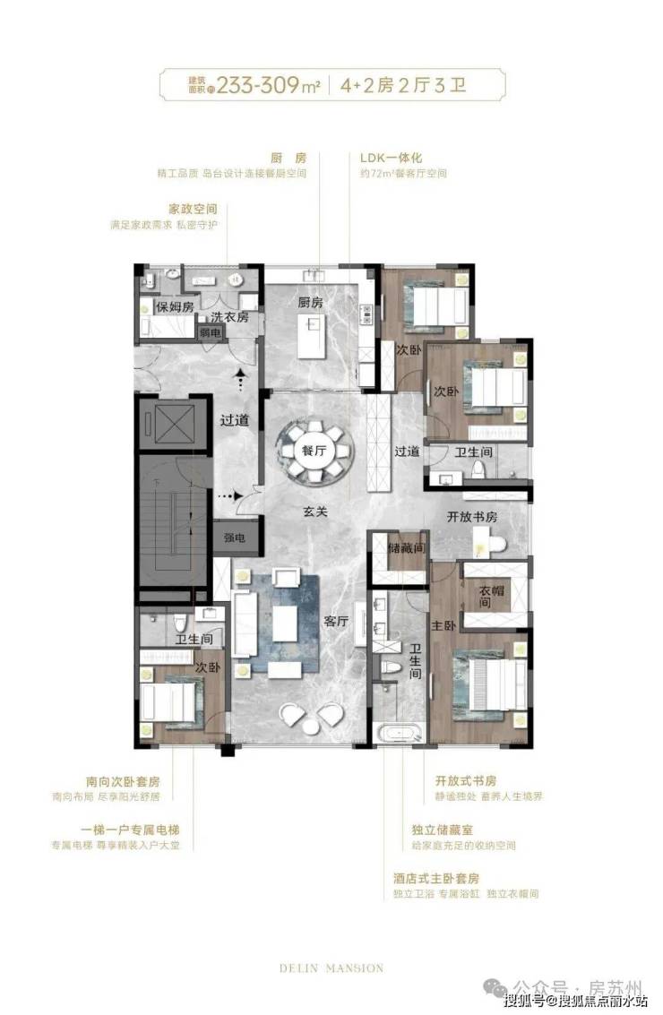德邻公寓建筑面积约233-309㎡奢阔平层大宅,以4+2房2厅3卫的非凡格局重构高端人居典范。独立精装入户大堂与专属电梯构筑归家尊荣;约72㎡的客厅、餐厅一体化空间,以通透尺度承载名流雅集,每一寸空间都在诉说对精致生活的执着追求,演绎现代层峰人士的生活仪式感。
