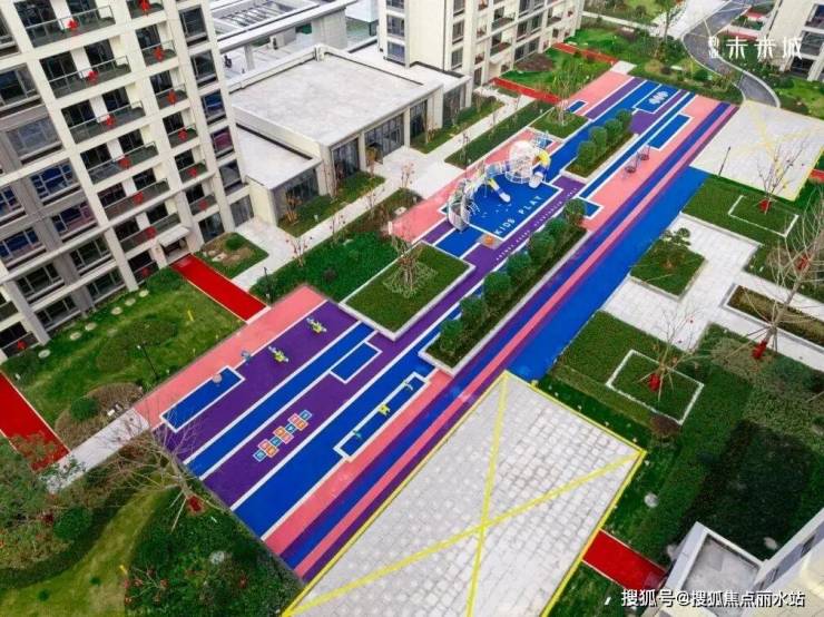 得益于最大约42米的阔绰楼间距,小区内还打造了多个专属活动空间,加强了景观配套的“互动性”。