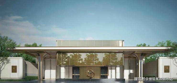 社区大门界面长达百米,主体门庭宽20米、9米挑高,顶部八芒星灵感源自河北省国宝“错金银四龙四凤铜方案”,米白色石材立面演绎赵州桥曲线与老火车站钟摆线条,让归家变成一场“与城市记忆的对话”。